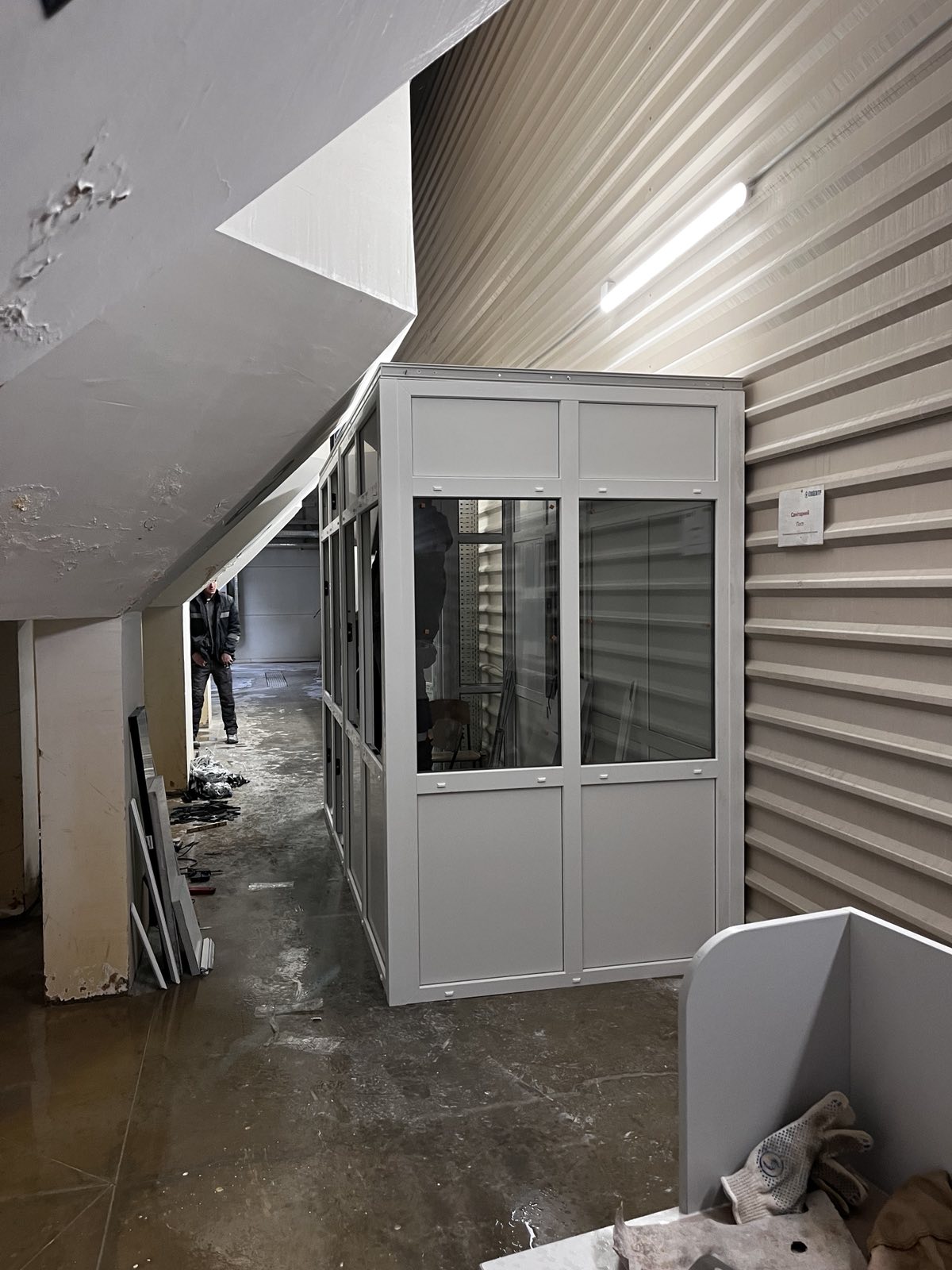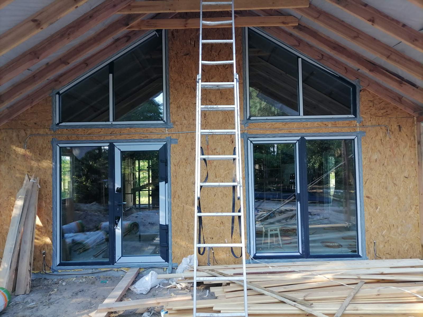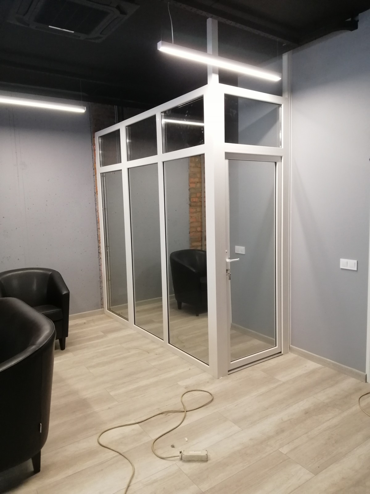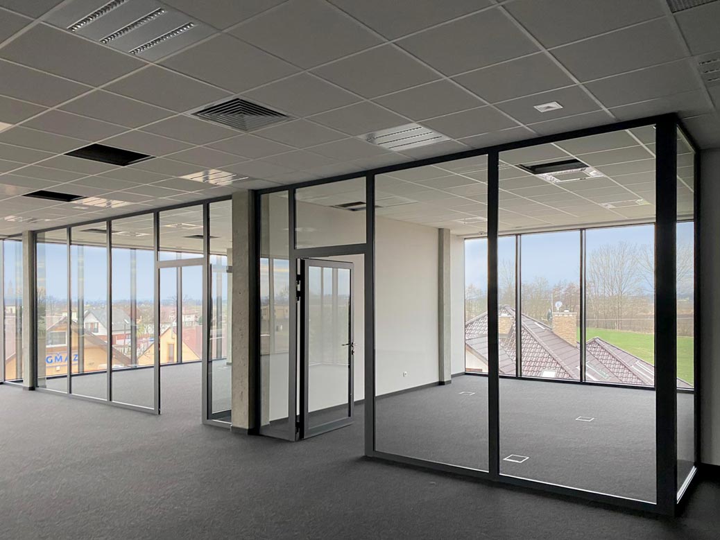 Входные металлопластиковые двери могут быть “глухими”, в данном случае используется сендвич-панель или HPL панель, или прозрачными со стеклопакетами.