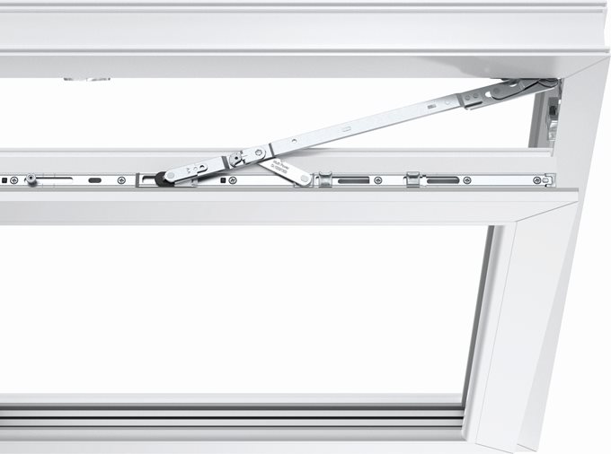 Высоко расположенные оконные фрамуги труднодоступны, поэтому для их открытия традиционной ручки недостаточно. Специальная система, состоящая из фрамуги и передаточного механизма, позволяет без проблем открыть окно для проветривания.