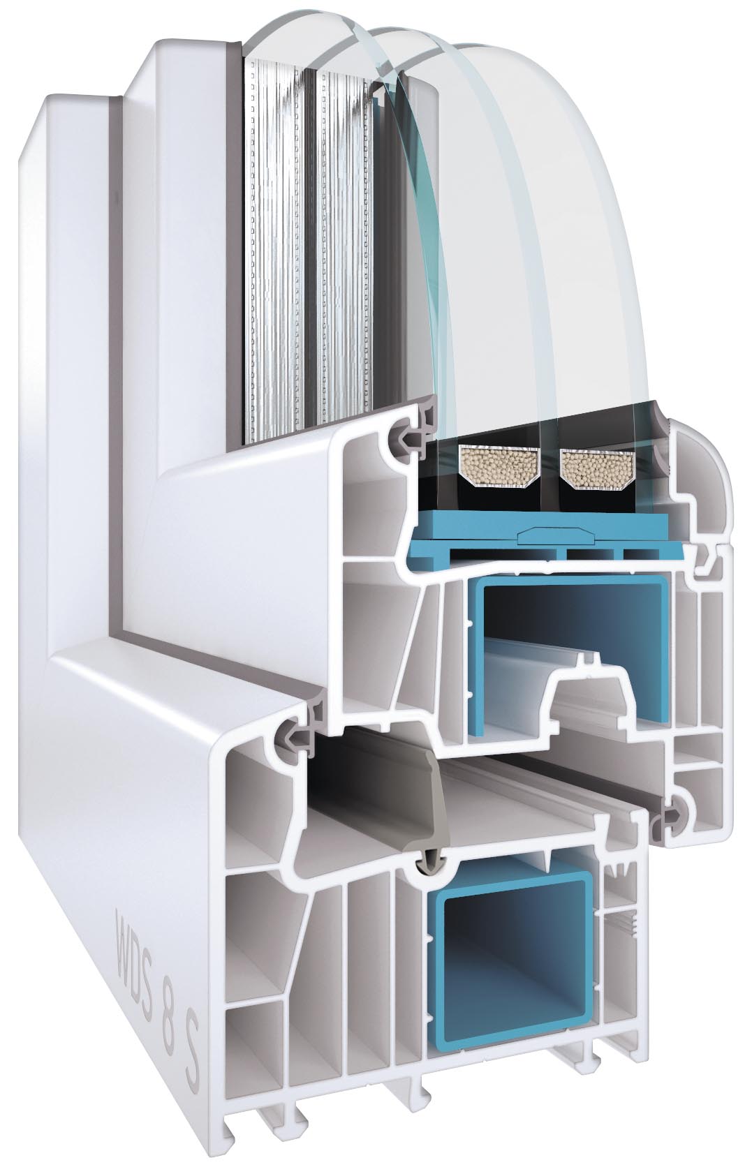 Профіль WDS 8S шестикамерна профільна система з монтажною шириною 82 мм. В системі передбачено середній контур ущільнення що підвищує тепло та шумозахист вашої оселі, а армування с замкнутим контуром підвищує стійкість до вітрових навантажень.